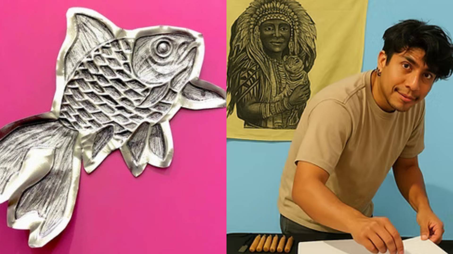 Artist Cesar Garcia leads a hands on workshop in the art of tin embossing, also known as repujado, guiding participants through the process of transforming thin metal sheets into striking dimensional artwork using simple stylus tools. Working from the reverse side, attendees transfer their own custom designs, press and shape the surface, refine textures, and watch as their images rise to life through light and shadow. By the end of the session, each participant completes a radiant decorative piece ready to display as an ornament, framed artwork, or small metal print. Based in San Bernardino, Garcia is a skilled printmaker specializing in xylography, pyrography, stencil, and airbrushing, and co founder of Grafica Nocturna, a collective dedicated to preserving traditional printmaking practices. His work has been exhibited at the The Cheech Marin Center for Chicano Art & Culture, Angels Gate Cultural Center, and the Ontario Museum of History & Art, bringing deep artistic expertise to this welcoming, all levels workshop where materials and step by step guidance are fully provided.