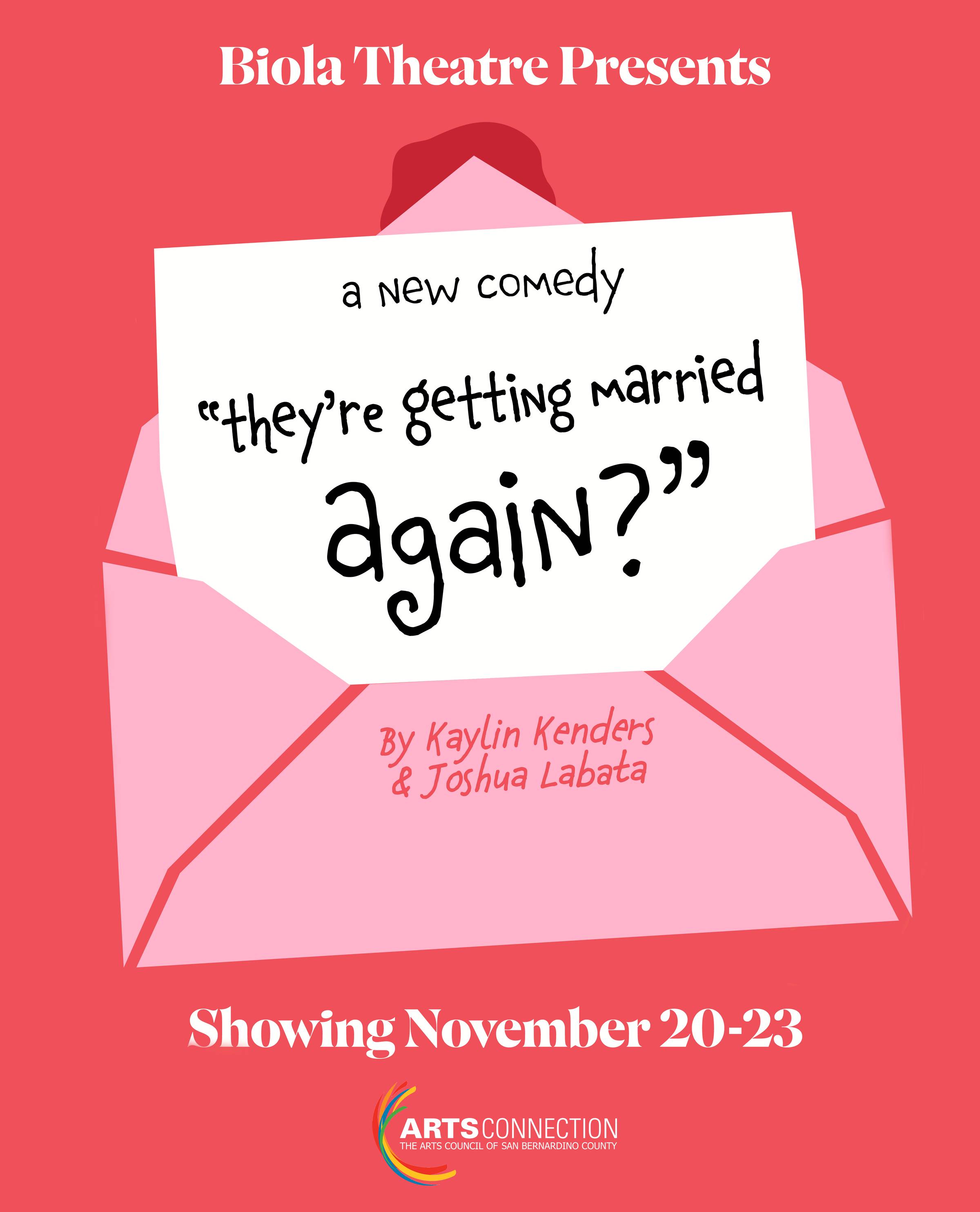 Playwright and Arts Connection Microgrant recipient Joshua Labata is set to debut his latest work, They’re Getting Married Again!, a fast-paced comedy full of mayhem, mishaps, and heart. The play unfolds just ninety minutes before the wedding march, as maid of honor and master planner Evelyn Adler scrambles to keep things on track despite a missing priest, propaganda puppets, an unconscious groom, and a meddling mother. What begins as a simple ceremony spirals into a laugh-out-loud journey through friendship, chaos, and second chances. The production runs November 20–23 at Biola Theatre, supported through Arts Connection’s Microgrant Program.