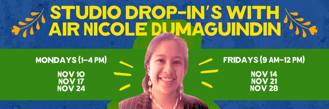 Join Estudio Aire’s AIR Nicole Dumaguindin throughout November for a series of interactive studio drop-ins exploring the creation of a BIPOC Theatre Alliance in San Bernardino County. Twice a week, theatre artists, actors, and enthusiasts are invited to share stories, discuss the state of local theatre, and dream up a more inclusive future—complete with collaborative mood boards and community dialogue. Mondays (1–4 PM) and Fridays (9 AM–12 PM) all month long.