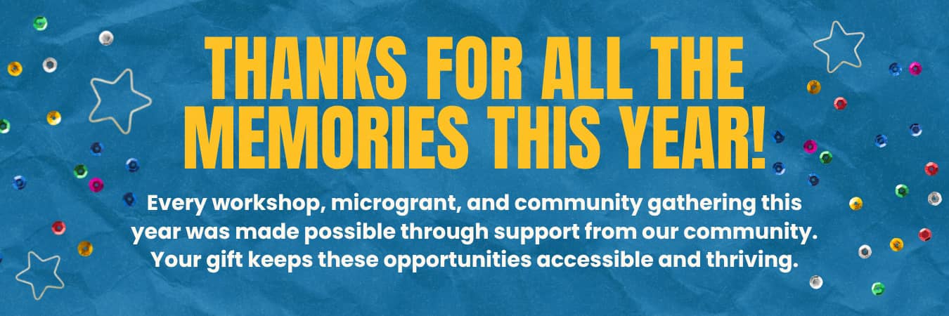 As we head into the holiday season, we want to take a moment to appreciate you. Every workshop, microgrant, youth class, public art project, and community gathering we hosted in 2025 was possible because people like you believe in the power of local creativity.