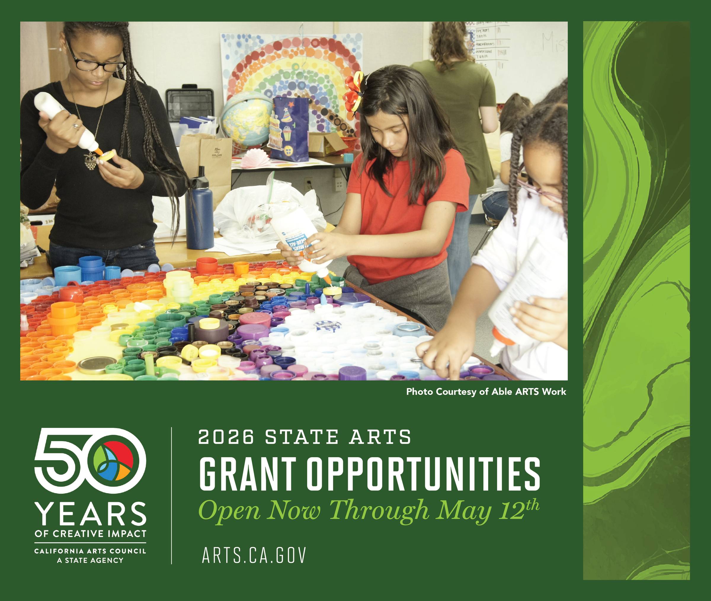 This year also marks 50 Years of Creative Impact—a milestone celebration of how the arts continue to shape vibrant, connected communities statewide. Learn more and apply