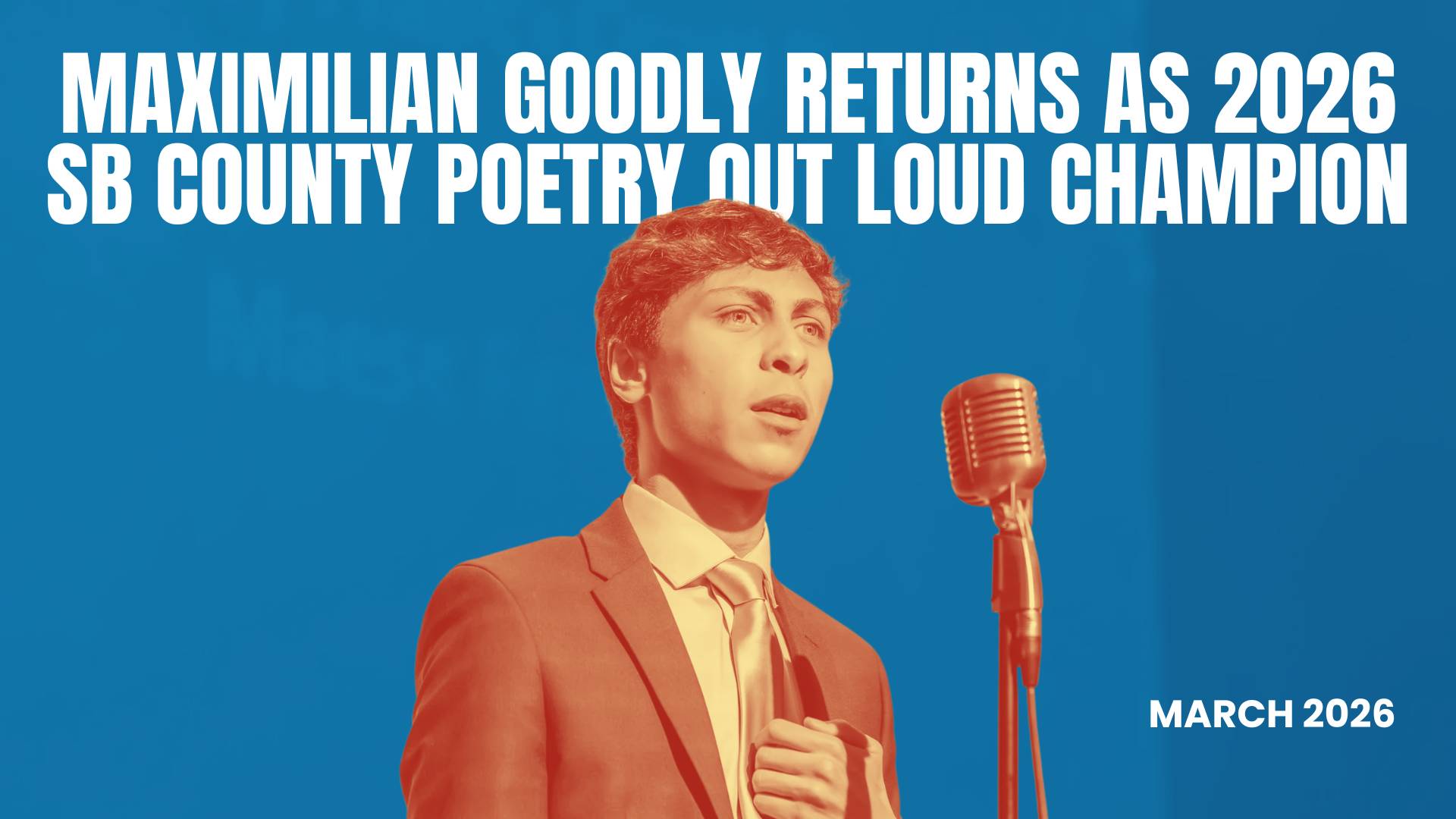 A Powerful Voice Returns! Maximilian Goodly, Out 2026 San Bernardino County Poetry Out Loud Champion!