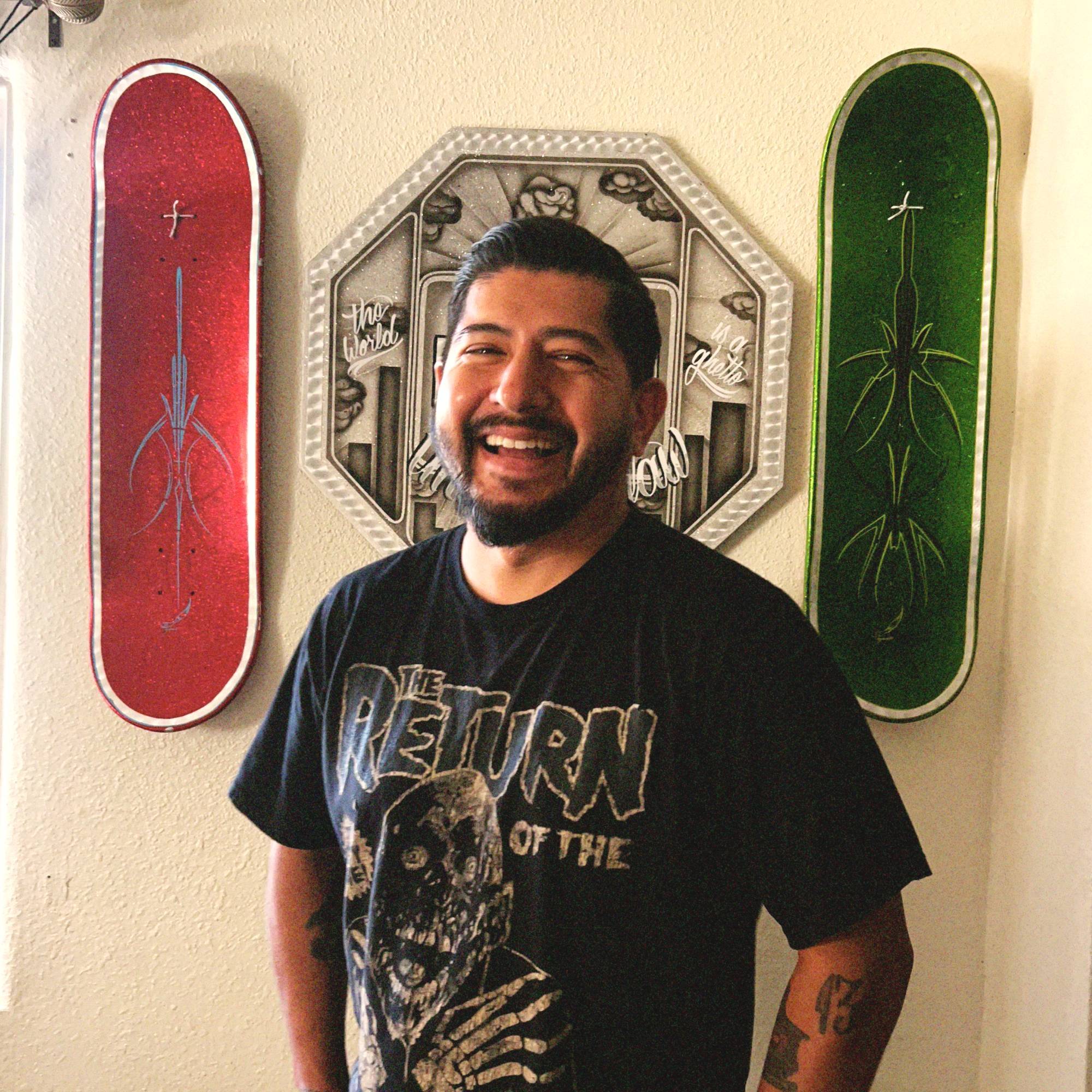 Joseph “Babaloo” Rodrigues is a professional pin-striper from San Bernardino with over 12 years of experience bringing custom paintwork to life across Southern California’s car culture. His hand-laid designs blend color, symmetry, and storytelling, honoring the legacy of lowriders, hot rods, and motorcycles. Dedicated to preserving tradition, he teaches the next generation to carry this craft forward with pride and authenticity.
